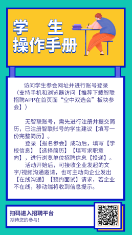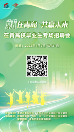 扫描活动海报二维码进入“‘就’在青岛·共赢未来”在青高校毕业生春季专场招聘活动主页,点击“云招聘”-选择“综合类专场招聘会”-搜索“职位”,参与招聘活动投递简历。