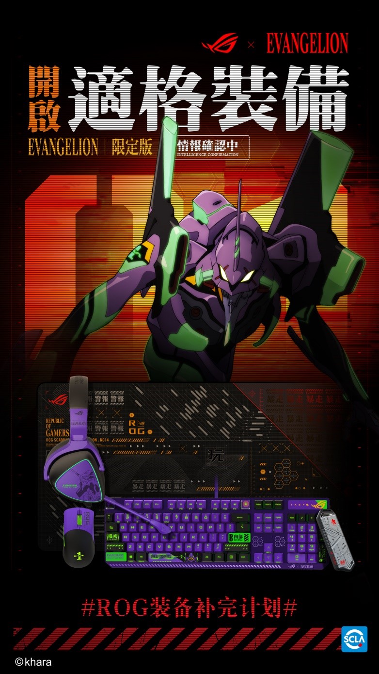 除了整机外,在外设方面,ROG为玩家带来了鼠标、键盘、耳机、鼠标垫四款EVA联名产品: