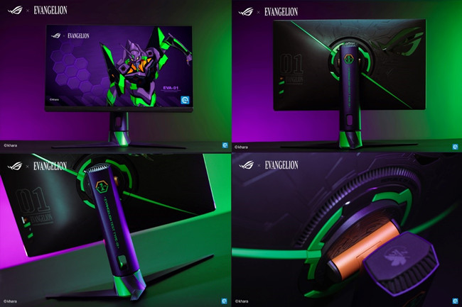 ROG STRIX XG27AQM绝尘电竞显示器新世纪福音战士丨限量版,整体采用了标志性的紫绿配色,背部ROG信仰LOGO调整为紫色后,可以与EVA元素更加浑然一体;搭配绿色“一刀流”斜切设计,霸气尽显。同时,这款电竞显示器还采用了旋转铠甲支架环设计,其灵感来源于初号机核心铠甲造型,棱角分明,硬核机械感油然而生。此外,显示器支架也以初号机手臂形象为蓝图,强有力的支撑感也塑造出了生生不息的生命力意象。