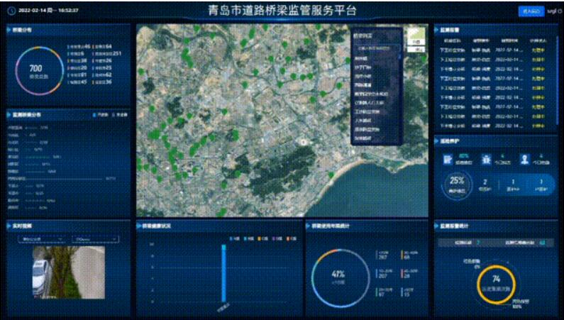▲青岛市道路桥梁监管服务平台,山东省首个接入全市桥梁信息的城市级平台