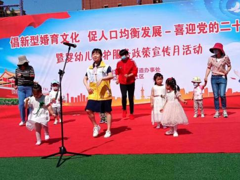 社区0-3岁托育点的孩子们表演了在托育点学习的舞蹈《竹兜欢乐跳》,街道计生协会志愿者团队带来赏心悦目的歌舞。现场还进行托育知识有奖问答,向群众宣传托育政策、科学喂养知识。