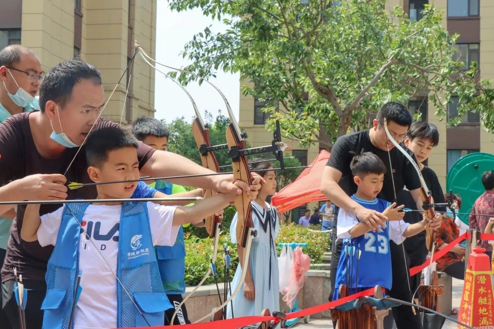 射以观德,射箭是一项传统而充满魅力的运动。为了让社区青少年得到传统文化的浸润,培养孩子们用射箭的态度对待人生,姿态端正、全神贯注,现场进行了“古六艺·射箭、投壶”体验。教练耐心的向孩子们传授技巧:两脚开立同肩宽、柔和开弓、平滑靠弦、水平用力...悉心的指导和手把手的纠正,加深了孩子们对“古六艺·射箭”的理解。同时,现场为小朋友群体开设了“古六艺·投壶”体验,通过小朋友们自己的努力,把箭投入壶中,欢声笑语回响在整个广场,久久不散。