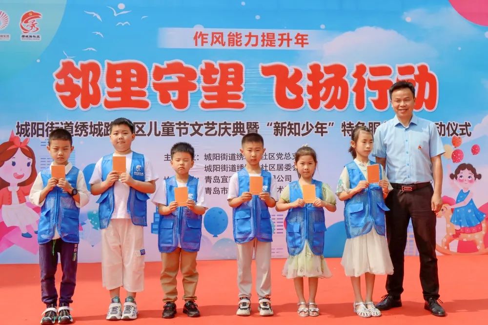 为进一步推进“作风能力提升年”活动深入开展,根据区委区政府的要求,结合街道党工委“作风能力提升年”活动工作安排,为夯实当代青少年理想信念的根基,提升社区居民幸福感和获得感,城阳街道绣城路社区以党建为引领,于2022年5月29日上午,举办儿童节文艺庆典暨“新知少年”特色服务项目启动仪式,街道相关领导、共建单位代表、正阳路派出所代表、城阳派出所代表、城阳中队代表以及社区居民共同参与了本次活动。