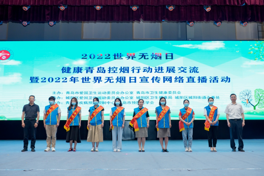 青岛新闻网5月31日讯 5月31日上午,健康青岛控烟行动进展交流暨2022年世界无烟日宣传网络直播活动在城阳街道仲村社区举行。青岛市卫生健康委员会副主任、中医药局专职副局长赵国磊,城阳区人大副主任焉峰,青岛市妇联副巡视员谭成英,青岛市委宣传部未成年人思想道德建设处处长张蓬,城阳区卫生健康局局长付坚强,青岛市卫生健康委员会机关党委专职副书记程毅、青岛市卫生健康委员会爱卫办处长王景宏、青岛市疾病预防控制中心副主任段海平,城阳区卫生健康局副局长韩香萍,城阳区爱卫办、城阳区人民医院、城阳街道、仲村社区相关负责同志参加直播活动。本次活动由青岛市爱卫办、青岛市卫生健康委员会主办,城阳区爱卫办、城阳区卫生健康局、城阳区城阳街道承办,青岛市疾病预防控制中心、青岛市预防医学会协办。