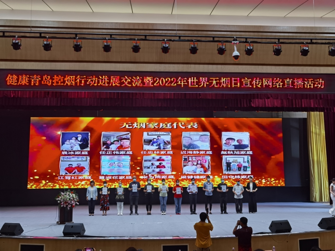 现场播放了青岛市控烟宣传片《爱的力量》。青岛市无烟机关——城阳街道办事处、无烟学校——城阳区第二实验小学、无烟医院——城阳区人民医院代表进行了交流发言,并为无烟家庭代表颁发证书。