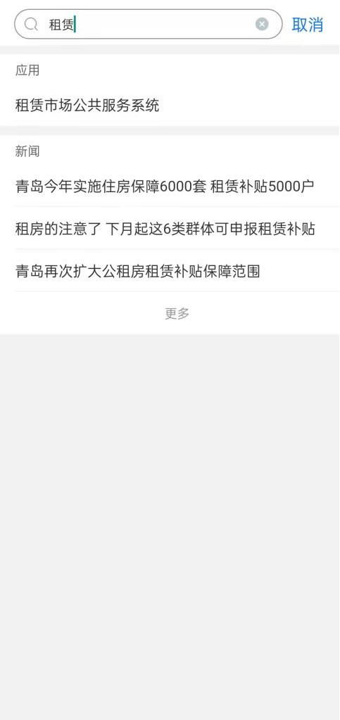 1、打开“青e办”APP首页,在上方输入搜索“租赁市场公共服务系统”,点击进入。