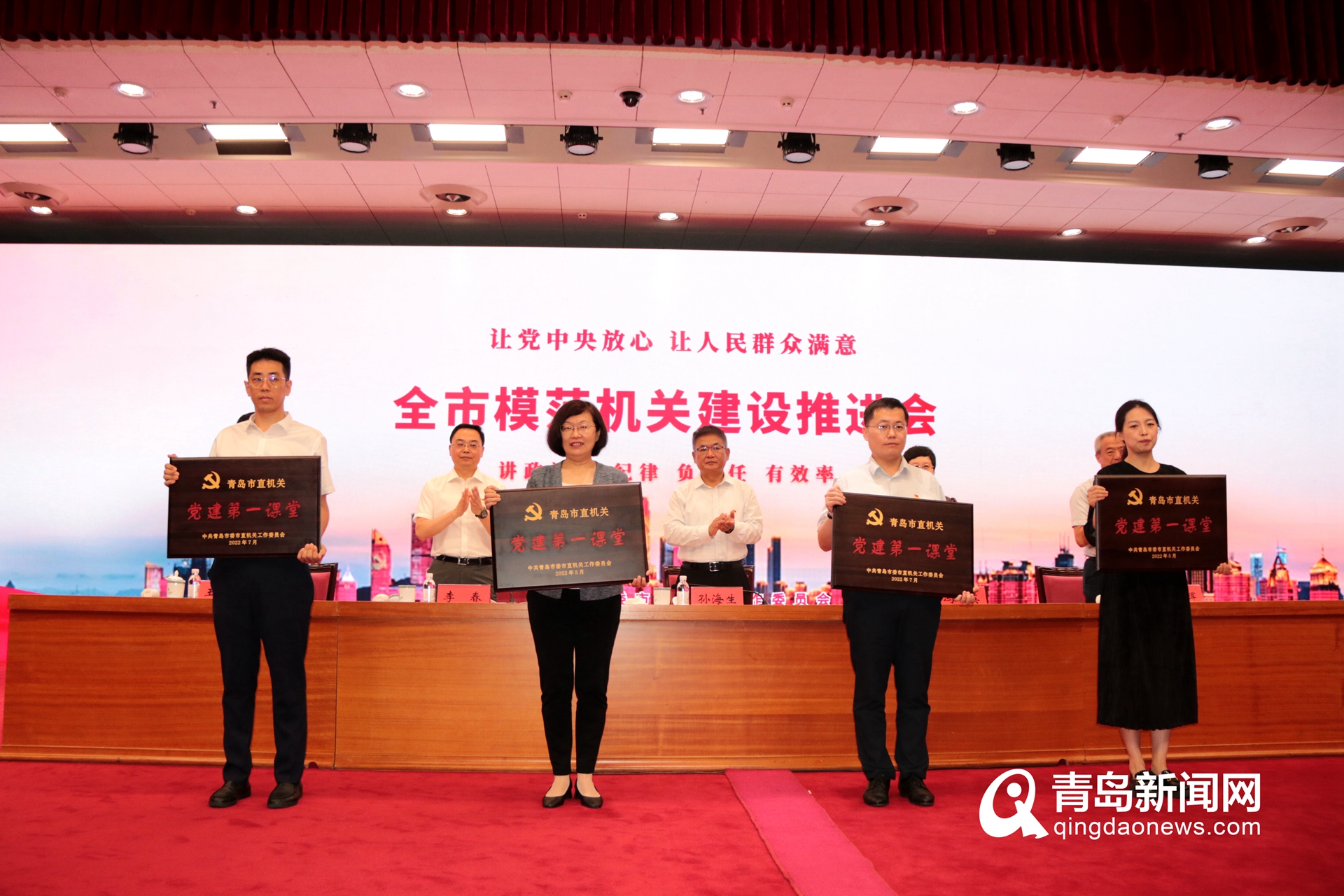 会议宣读了《关于公布第一批市直机关党建“第一课堂”的通报》,为青岛红景核心区、中共青岛党史纪念馆、青岛西海岸新区全面从严治党廉政教育馆、青岛市保密教育实训平台等4个市直机关党建“第一课堂”进行了授牌。