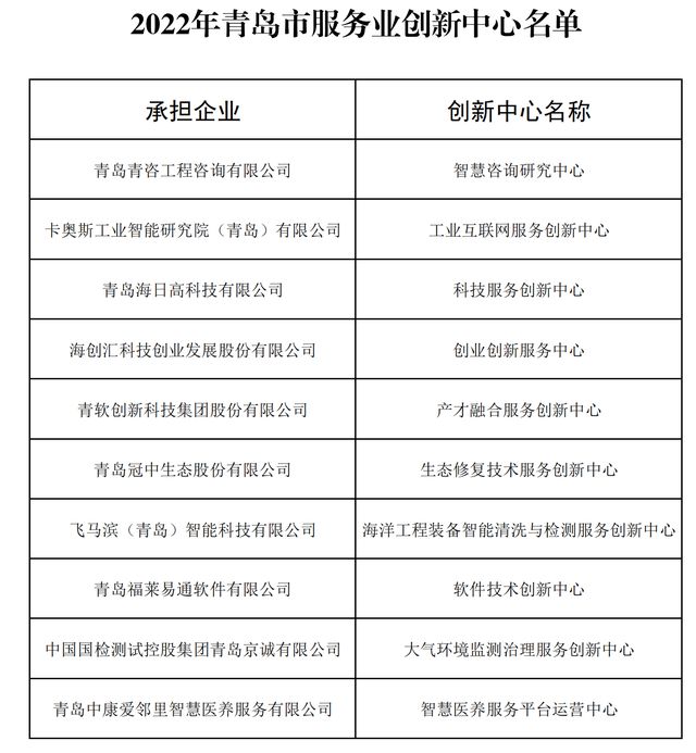 青岛日报社/观海新闻 7月13日讯 记者从市发展改革委获悉,市发展改革委日前印发《关于公布2022年青岛市服务业创新中心名单的通知》,认定了青岛青咨工程咨询有限公司智慧咨询研究中心等10个市级服务业创新中心。截至目前,青岛共有20个市级服务业创新中心,与14个省级服务业创新中心初步构建起服务业创新体系建设的梯次发展格局,全市省级服务业创新中心数量稳居全省首位。