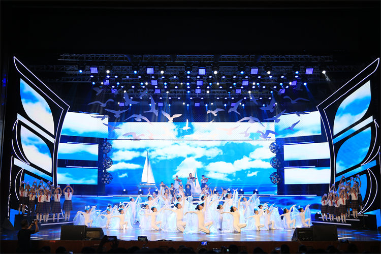 晚会在序曲《心中的小白帆》中拉开帷幕,伴随着美妙的童音合唱,来自小白帆舞蹈团的小演员们在大海的波涛中翩翩起舞,带领现场观众回到了30年前的小白帆,诠释着青岛少儿电视事业的开启。整个晚会以红色经典和爱国主义教育为主线,贯穿着青岛少儿电视事业和小白帆发展、壮大的30年光辉历程。《白龙马》《喜羊羊》《大头儿子和小头爸爸》等耳熟能详的卡通动漫歌曲把现场观众带回到了天真烂漫的童年回忆;《阳光》《我的小白帆》《孤勇者》等大量原创舞蹈节目,在小演员们的精心演绎下,展现出一幅幅优美的画卷;朗诵节目《少年中国说》《少年中国梦》抒发了青岛少年振兴中华的壮志豪情;在科技梦幻情景节目《星辰大海》、歌舞《爱你青岛》节目中,不仅展现了QTV蓝鲸小记者们实地采访的功力,也折射出青岛这座城市日新月异的变化。尤为值得一提的是,知名女高音歌唱家伯鹤也来到了庆典晚会现场,为观众们献上了一首《梦青岛》。随后,这位从“小白帆”走上更广阔艺术舞台的首届学员与来到现场的小白帆老团员们共同唱起团歌,用歌声为母校送上深情祝福。伯鹤说“看到舞台上的这些孩子,仿佛又看到了当年的自己。30年前我在小白帆登上了非常多的舞台,那时候就在心里埋下了一颗艺术的小种子。”在昨晚,还有很多小白帆的老教师也来到现场,他们都心潮澎湃。其中资深戏剧教育家刘元鸣老师还参与到了本次晚会的创作中,他专门创作了音乐剧《伞之桥》。“当年在小白帆和孩子们共度了6年,最快乐的是从事了艺术教育,引航天分勤勉的孩子们驶向远方!”