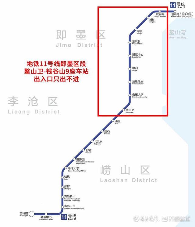 青岛地铁11号线运营有调整,即墨区段9座车站只出不进
