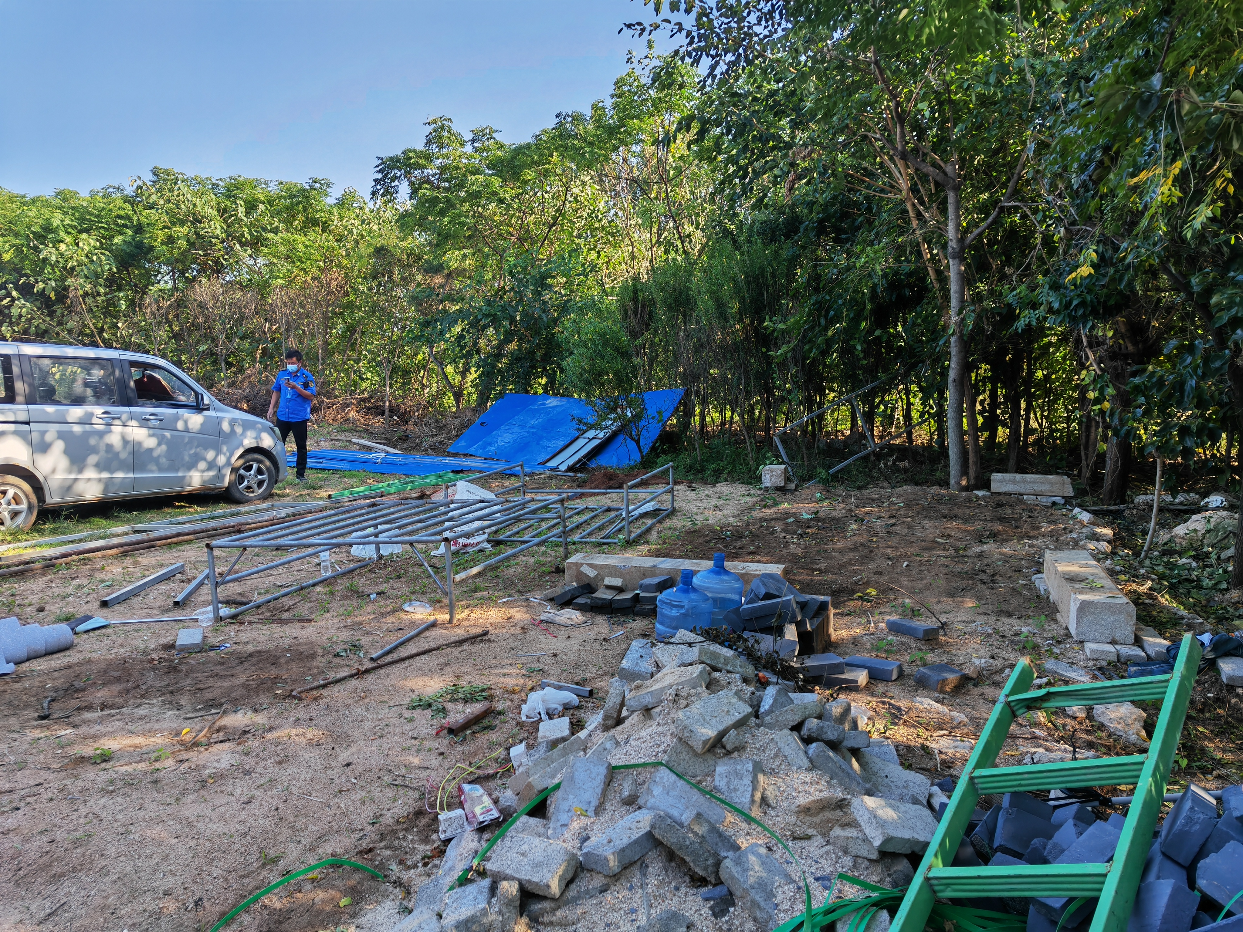 鳌山卫综合执法中队执法队员第一时间参与到辖区疫情防控各项工作中,对于违法建设治理工作,积极克服因疫情影响所带来的工作人员力量不足、村庄临时管控等困难,中队利用无人机在辖区进行巡查摸排,对摸排到的违法建设、私搭乱建在鳌山卫街道解除临时管控第一时间,综合执法中队协助街道到村庄进行依法拆除。在拆除行动中,做好疫情防控不松懈,佩戴口罩,做好防护工作,及时疏散周边群众,平稳安全有序的完成违法建设拆除工作。