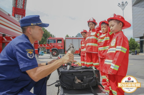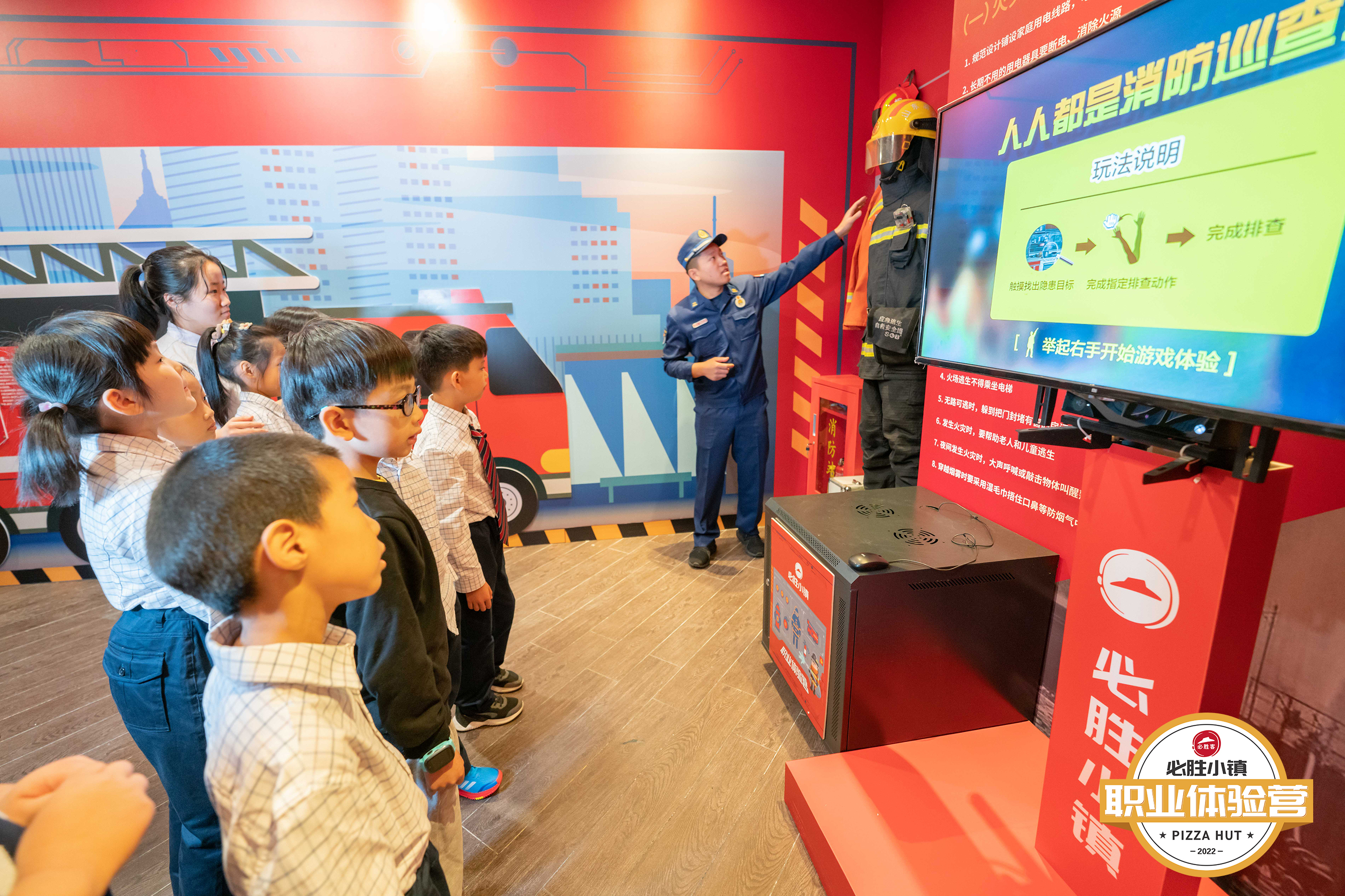 亲子运动会体验结束后,孩子们在消防员叔叔的带领下,来到了济南高新万达必胜客餐厅中65平方米独立消防互动体验空间——“必胜小镇”,他们戴好“小镇徽章”认真听取消防科普讲解,学习“体感消防游戏”、进行磁吸消防标识互动,亲手触摸消防服、救援衣,学习如何在日常居家环境中识别消防隐患……在这个过程中,一站式体验了消防员的日常。孩子们还共同完成了消防科普立体翻翻书,用图文并茂的方式学习了消防知识。随后,参加活动的小朋友和消防员叔叔共同制作了比萨,在提高动手能力的同时,也表达了对消防员的敬意。