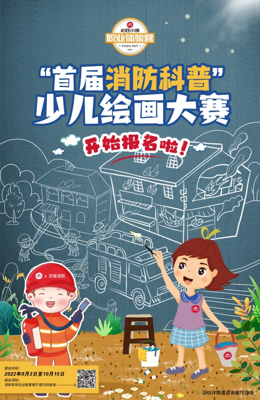 对此,济南市消防救援支队新闻宣传处一级助理员柏方朔介绍说:今年征集的绘画作品将在今年119消防日活动上展示,获奖作品将获得消防科普宣传员专项证书,济南必胜客相关餐厅也将在11月进行为期一个月的巡展,欢迎大家积极报名!”