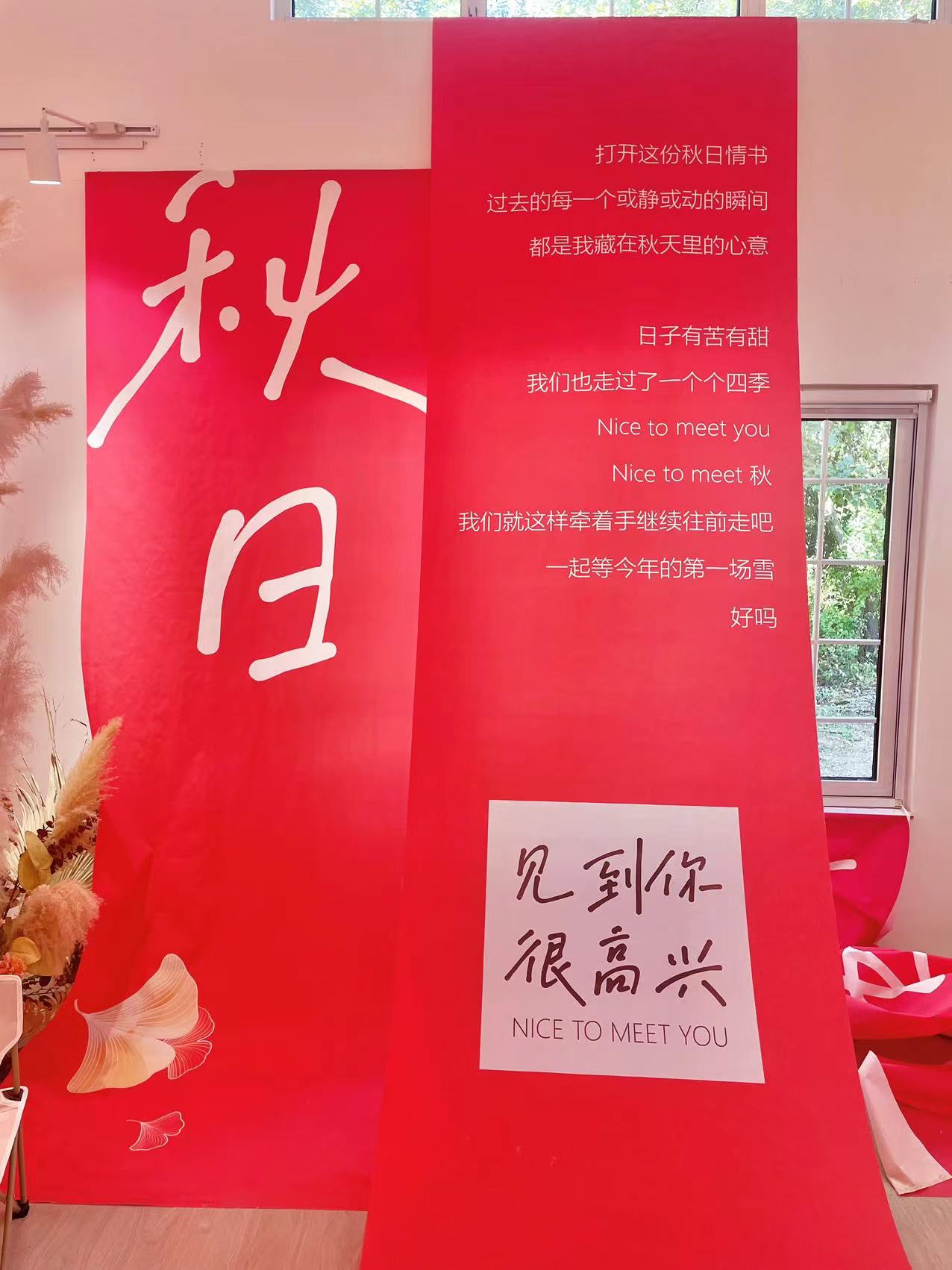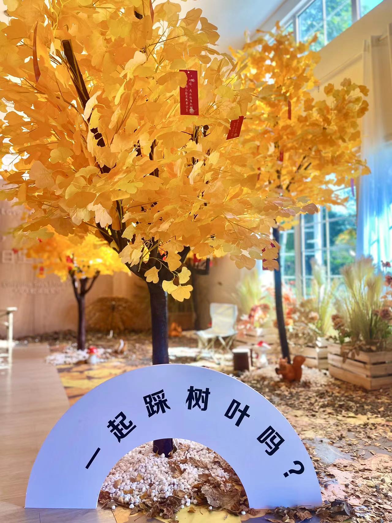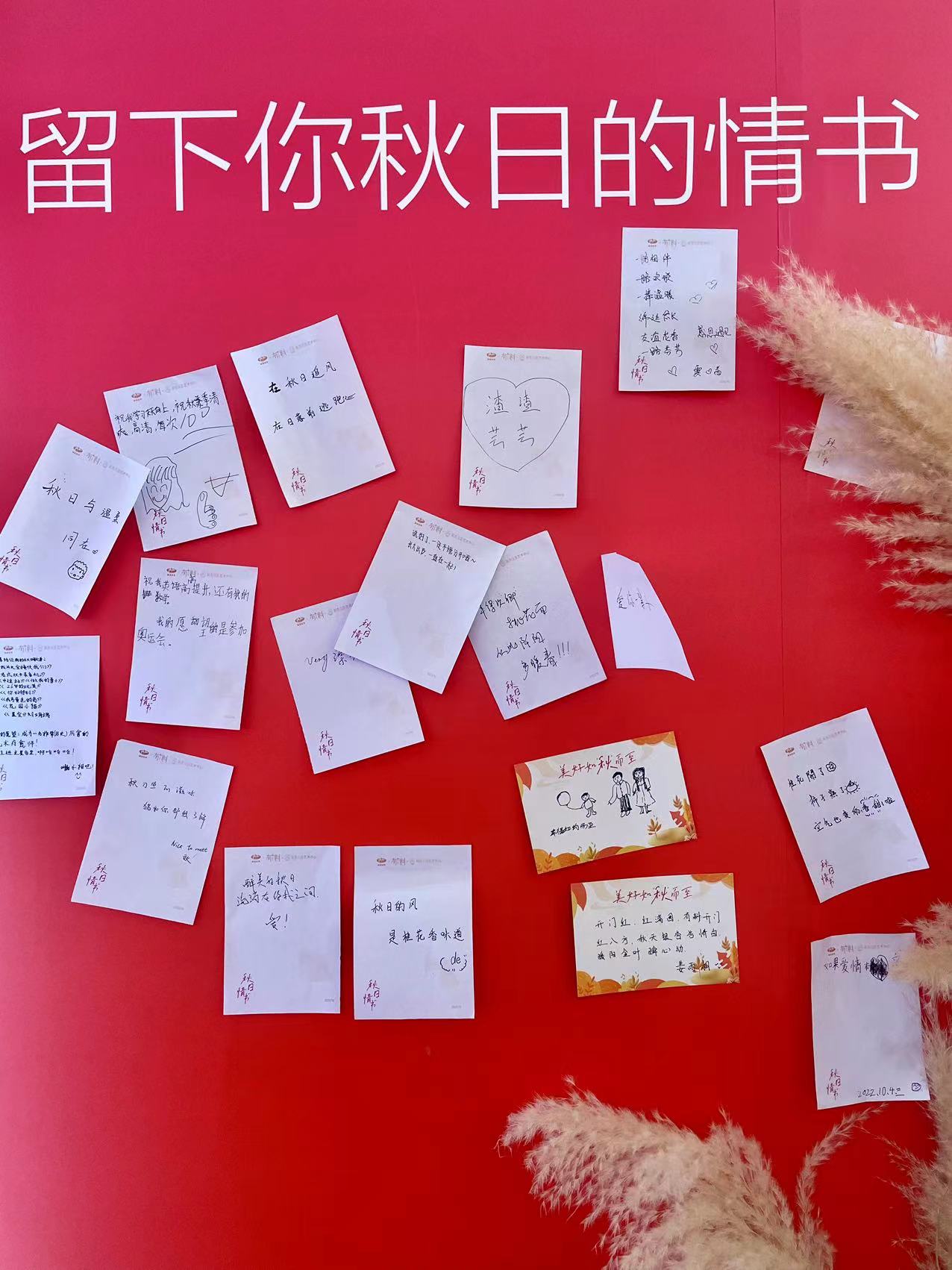 散落在各处的“秋日情书”,“我在秋天说爱你”、“秋天的银杏与温柔同在 正如你与我依旧相拥”、“我在秋日贩卖浪漫”、“一起踩树叶吗”......浪漫的字句让原本寂寥的秋季添了许多生机与活力。