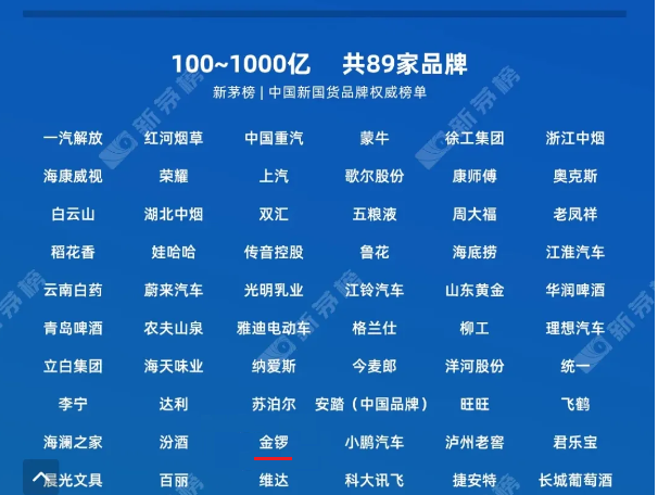 近日,由新消费新国货社群“海豚社”独家调研,通过对消费品牌知名度、影响力、品牌形象和社会责任感等多维度评估,重磅发布新茅榜-2022中国消费品牌500强。经过严格的数据核验与专家评审之后,中国肉制品龙头品牌金锣,凭借出众的品牌影响力、雄厚的品牌积淀和资本积累,以及坚韧的抗压力等多方面的综合实力荣登榜单,跻身100~1000亿品牌阵营,展现了中国肉业龙头企业的强劲发展潜力。