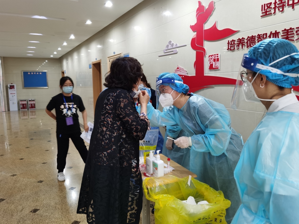 核酸检测,倾情助力。健管中心始终以人民至上、生命至上,身体力行为防疫工作奉献自己的力量。我们的核酸小队响应市、区卫健委的号召,长期参与全民核酸检测的工作,无论是定点采样,还是爬楼入户,我们的同志从未退缩和抱怨,一声声“谢谢”,“麻烦你们了”都是我们坚持的动力。高考期间,健管中心徐永康主任和姜积军主任带领18名中心医护人员来到青岛二中分校,与校方密切配合,细心高效地完成考生核酸采样任务。采样之余,大家积极为考生减减压、加加油、助助力,用微笑传递积极向上的乐观情绪。看着一张张朝气蓬勃的面孔,我也仿佛重回了箐箐校园。此次助力高考的核酸采样任务得到区卫健局、校方和考生的好评。