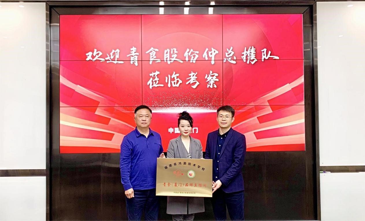考察期间,青岛食品党委书记、董事长仲明、副总经理田健、销售部部长施萌一行,中国轻工企业投资发展协会(以下简称“中轻投资”)孙莉莉主任及青岛千熙云科技有限公司(以下简称“青岛千熙云”)运营负责人齐聚厦门福建鸿源技术学校,在学校校企合作板块负责人曹芳校长陪同讲解下,深入参观、了解了学校的人文历史、师资实力和专业建设,就青岛食品在厦门开展品牌直播、进行校企合作事宜进行了深入交流,就双方合作达成共识。