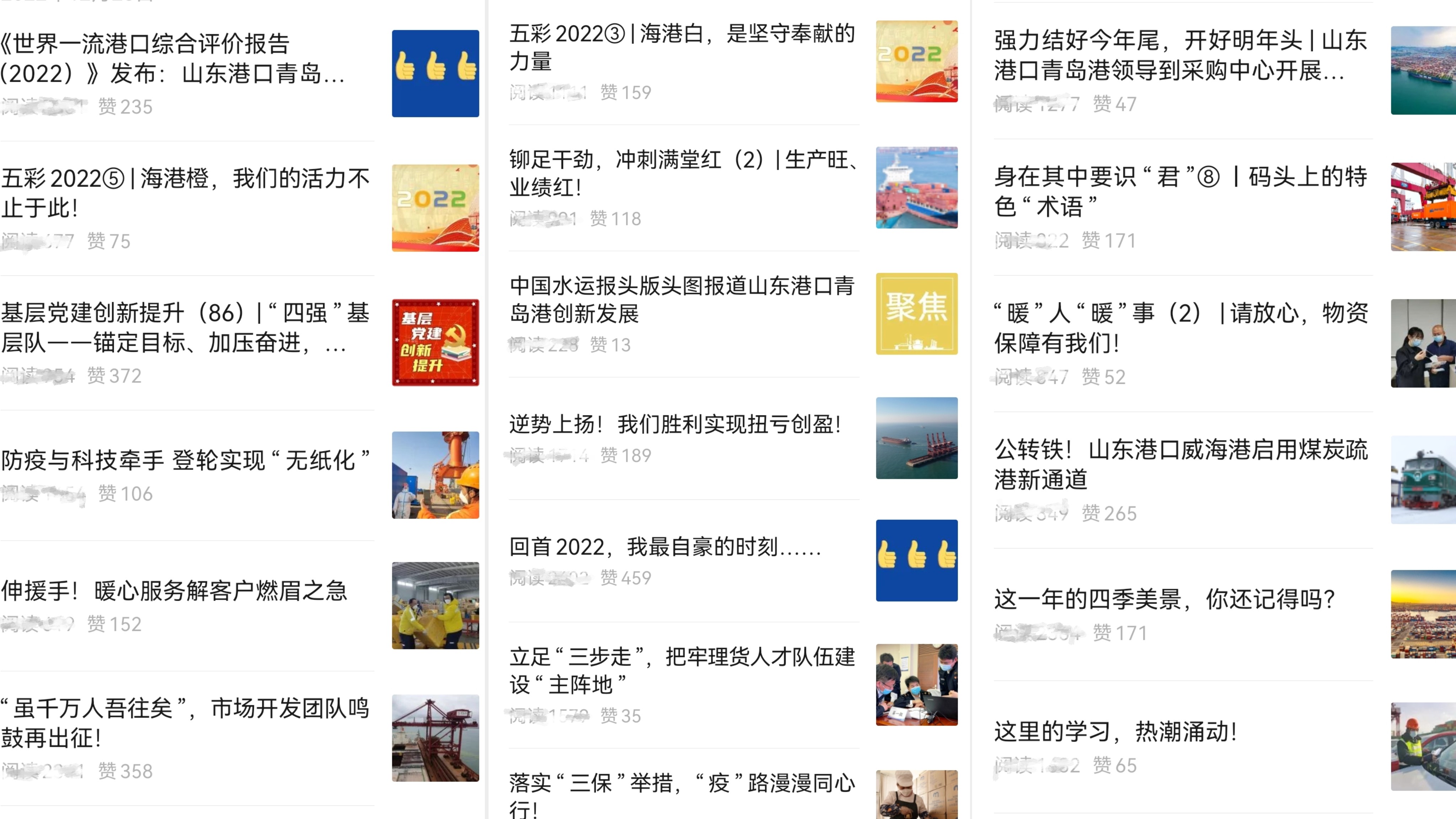以“创新领先、争创一流”为核心方向,笃定融合发展。青岛港新媒体发展兢兢业业,百尺竿头,以最高发布次数、最高点赞数、最高在看数赢得关注。