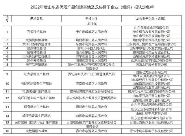 山东优质产品创建基地及其龙头骨干企业拟认定名单发布,青岛一基地一企业上榜