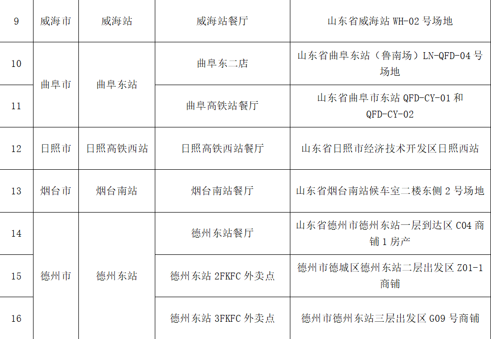 截止2023年1月23日,山东省内“悦途出行套餐”免费兑换的肯德基餐厅如下——