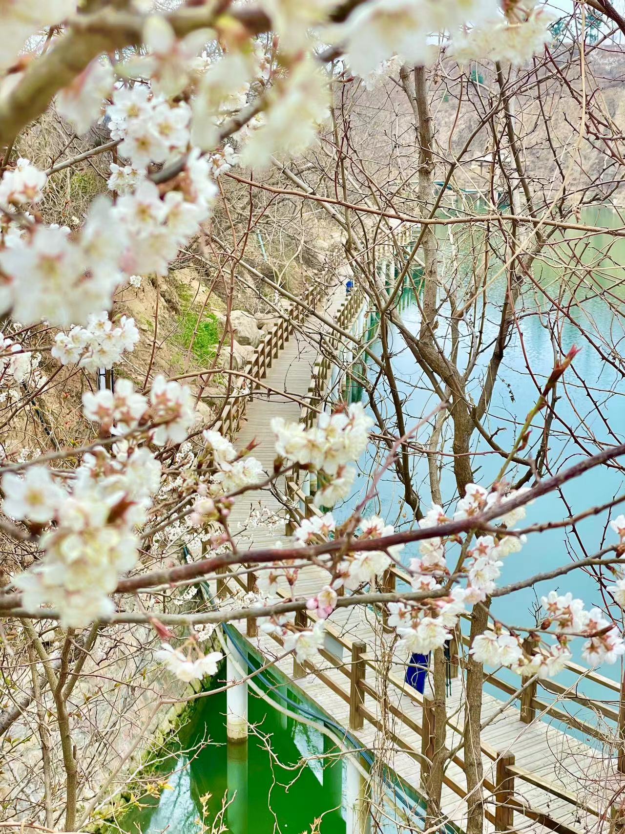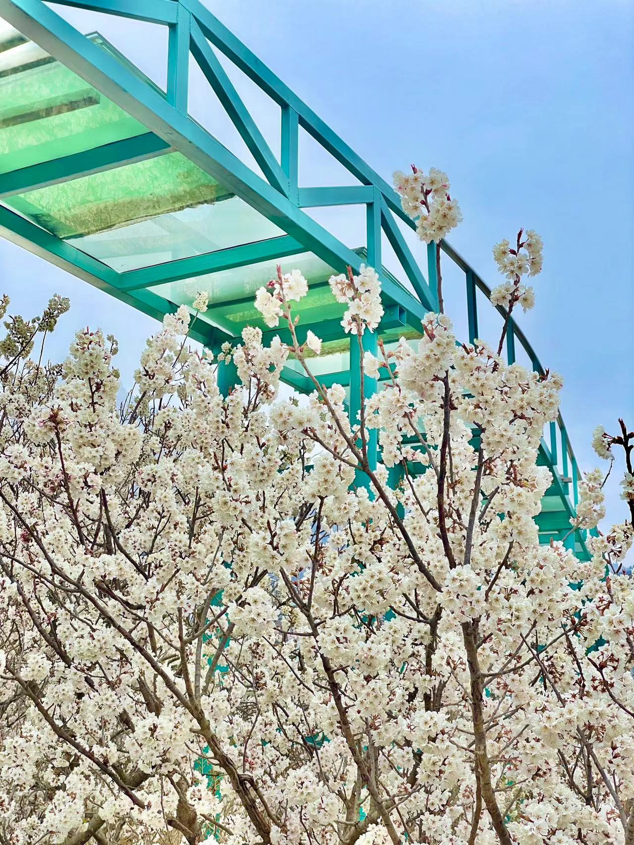 更让人意想不到的是还可以拍到“开往春天的地铁”,此处有两个打卡点,mark住:从地铁11号线A口出来后,正前方有楼梯,走下来左拐,走几步就可以看到木栈道,走到木栈道上就可以找机位拍摄;再就是沿着木栈道一直走到一个两层高的凉亭位置,在二楼凉亭也可以拍到。