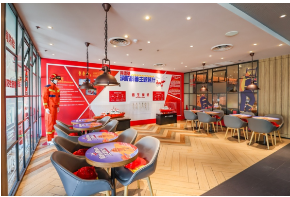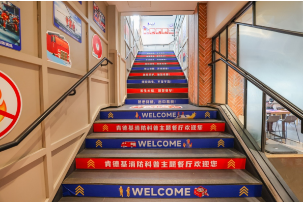 位于青岛市市南区郯城路6号的山东首家肯德基消防科普主题餐厅于2022年12月11日正式亮相后,一度成为了青岛消防宣传的特色窗口,持续引导和提高全民消防安全意识,为普及消防安全知识贡献力量。肯德基消防科普主题餐厅,在布置上以消防科普主题元素为主,将“火场逃生口诀”“灭火器的正确使用方法”“逃生绳结示范”“家庭消防安全隐患”等消防安全常识融合形象生动的卡通形象,简单而又直观,让餐厅员工以及前来就餐的顾客耳濡目染地接受消防安全教育。