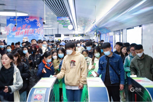 青岛地铁通过调整优化行车组织方案,科学排布不同时段的运力,缩短乘客候车时间(其中3号线周末最小行车间隔为4分35秒);在青岛地铁App界面上线赏樱弹窗提醒,增加不同时段车站、列车PIS提示,以及不同场景下的列车广播;重点车站出入口通道、扶梯、进出站闸机等区域设置客流保障点位,引导乘客安全、分散出行,保障乘客有序乘车,为乘客提供咨询指引、秩序维护、关爱帮扶等便民服务。