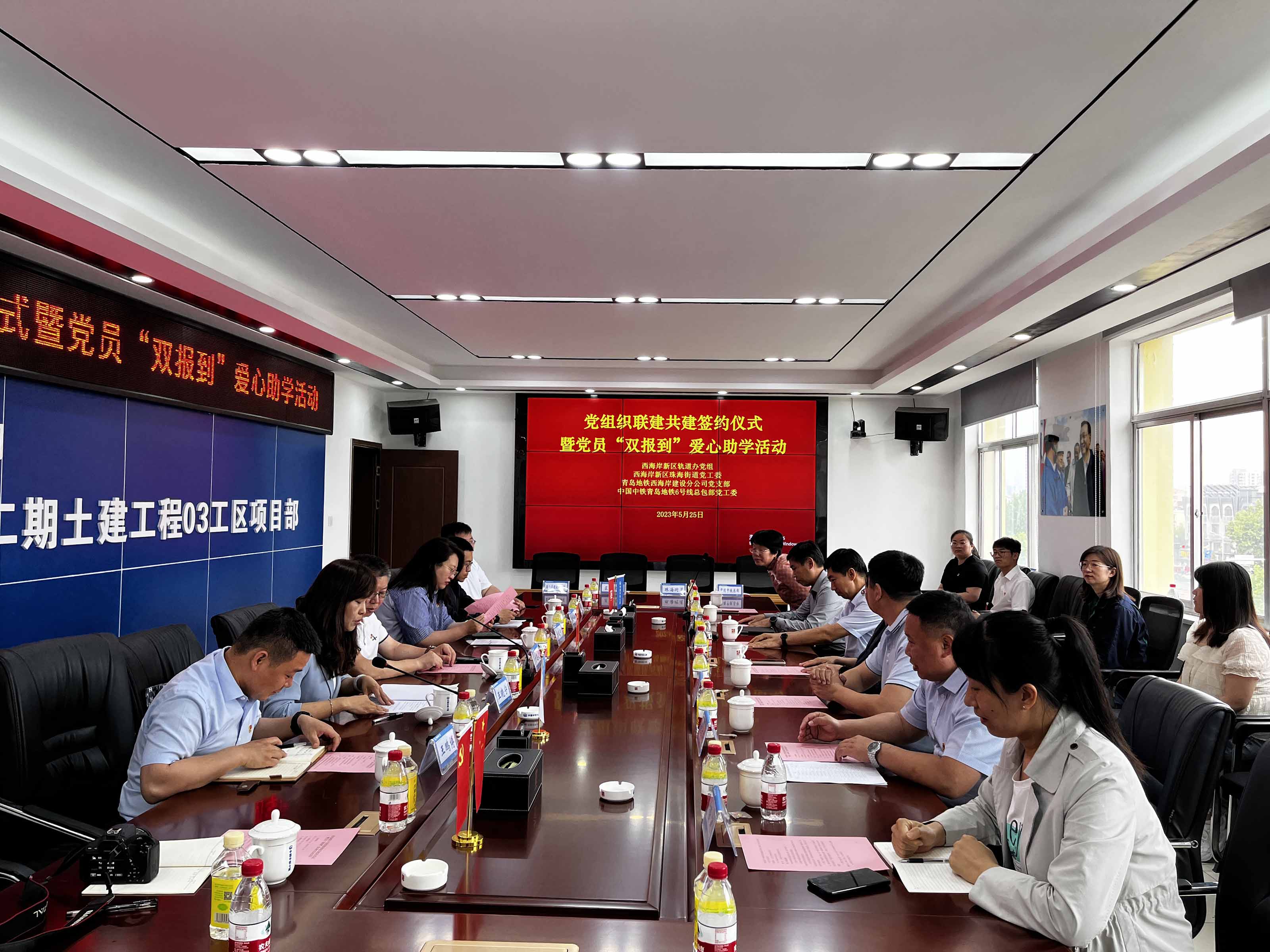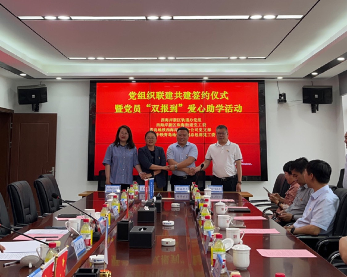 5月25日,青岛西海岸新区轨道交通规划建设指挥部党组、青岛西海岸新区珠海街道党工委、青岛地铁西海岸建设分公司党支部、中铁发展青岛地铁6号线总包部党工委,在青岛地铁6号线二期03工区中铁七局项目部联合举行“地企同心凝合力携手共绘同心圆”党建联建签约仪式和党员双报到爱心助学活动,四方党组织合力携手开启了地企共建共享、双向奔赴的新篇章。