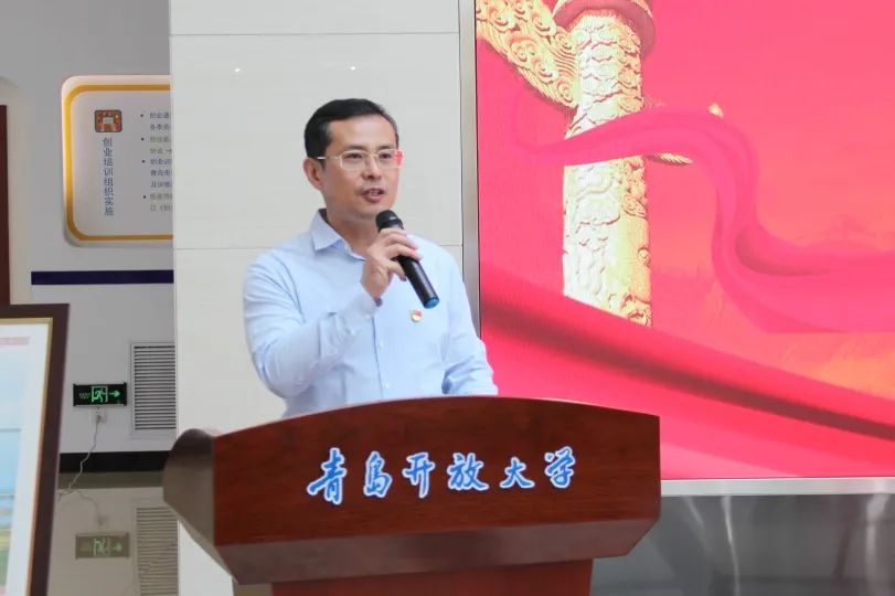 市委主题教育第十一巡回指导组副组长、市教育局学前教育处一级调研员葛砚荀,组员市直机关工委组织部二级调研员吴斌到会指导。青岛开放大学党委书记李明钢致辞。青岛开放大学党委副书记、校长张锡科主持仪式。青岛开放大学党委班子成员、副处级以上领导干部参加活动。