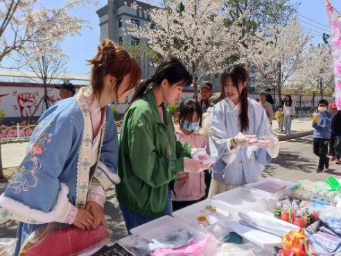 青岛职业技术学院通过“扎染”非遗项目为大场镇吉湄樱花市集专属IP“引流