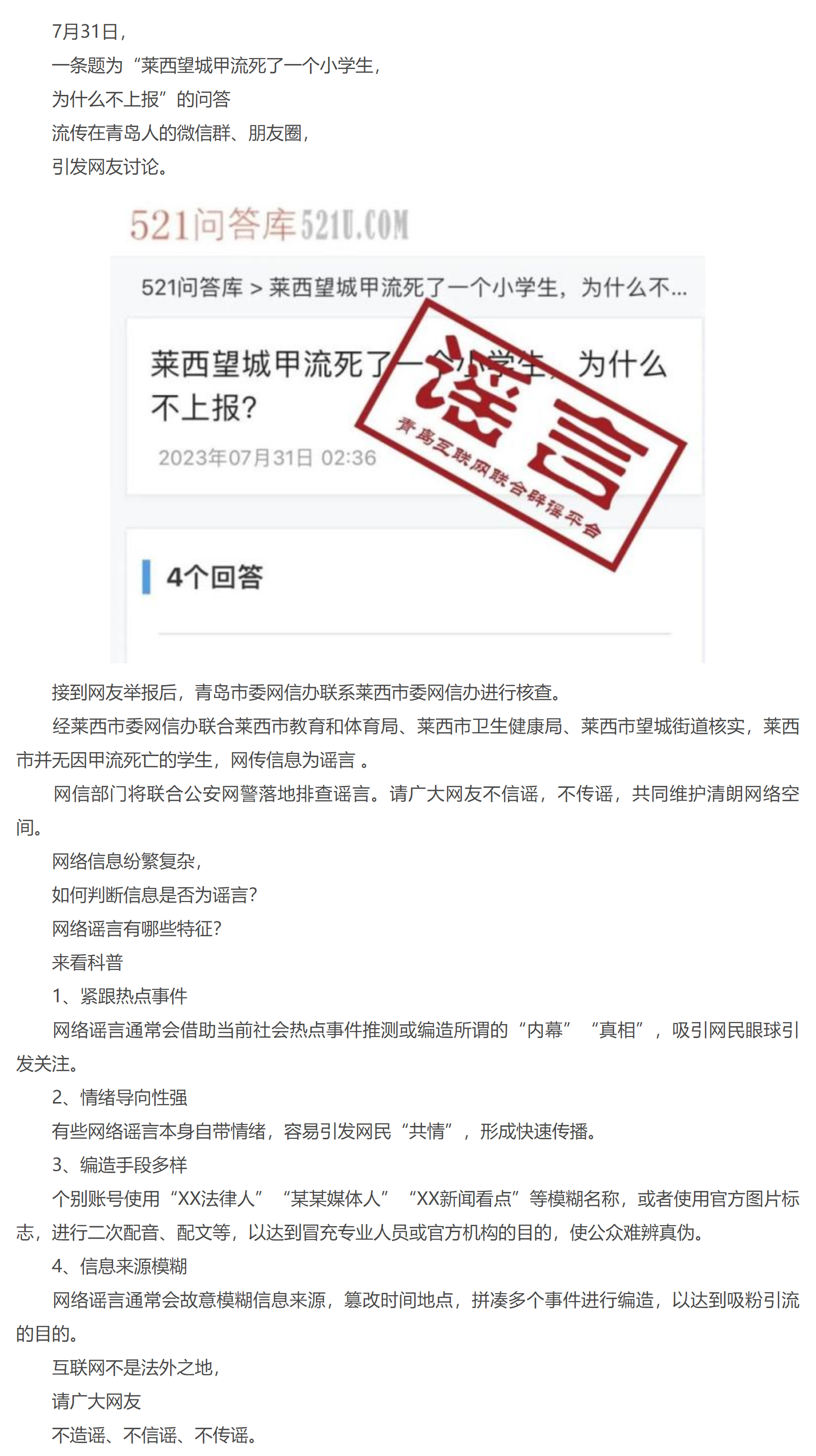 青岛一地小学生因甲流死亡?官方辟谣