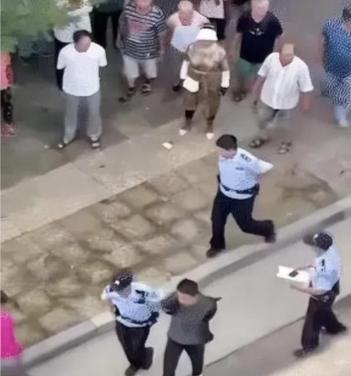 点开视频后发现,视频中一名灰衣男子被警方控制带至顶部标有“0519”字样的警车。