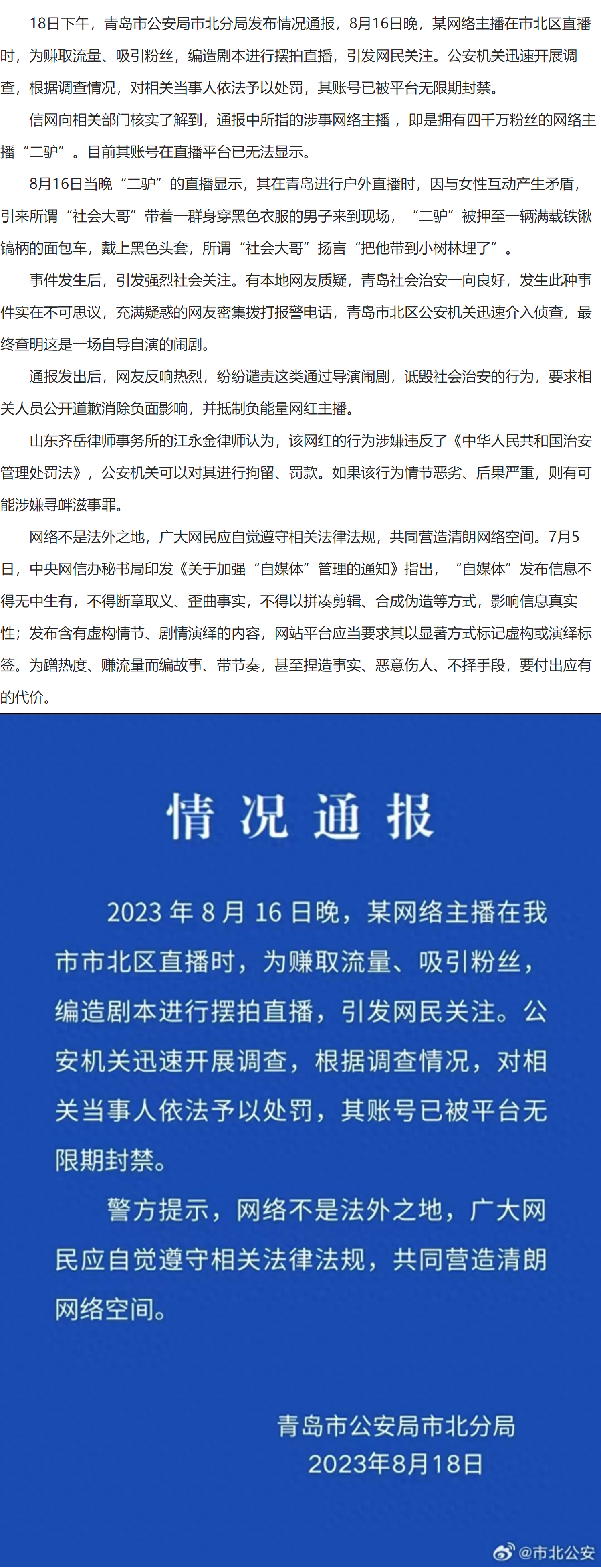 网红“二驴”导演绑架闹剧被封 户外直播须遵循公序良俗