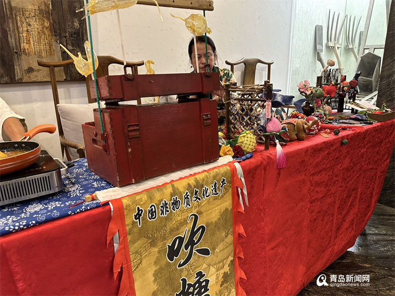 宾客纷至沓来、游人络绎不绝地走进乔记渔庄,现场民间艺人展示着青岛当地的民俗工艺,将节日的氛围传递给每一位来往食客,共同感受青岛文化的魅力。