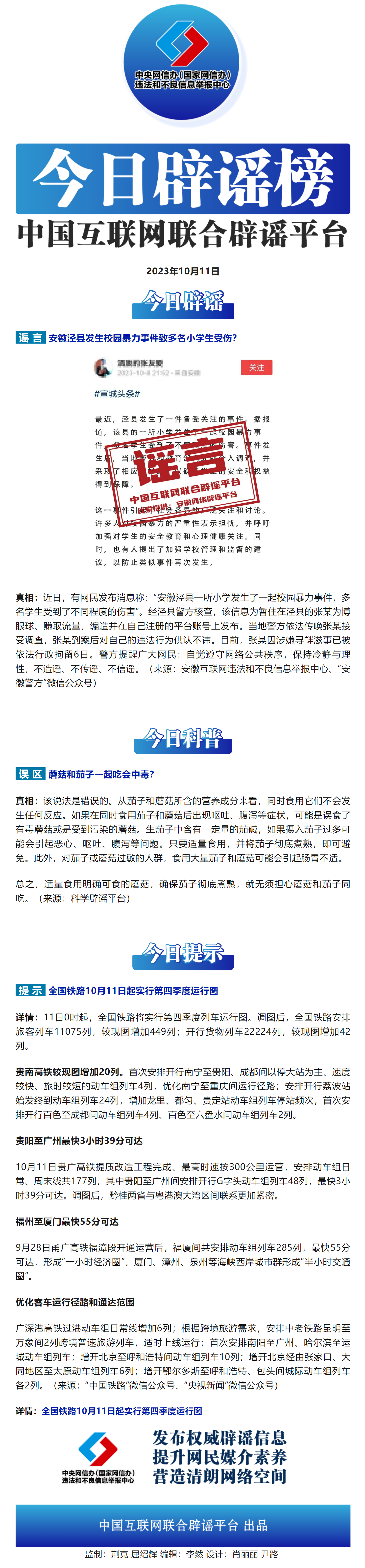 山东互联网联合辟谣平台2023年9月辟谣榜发布