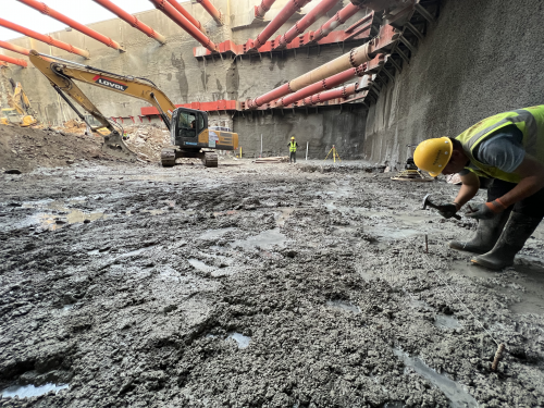 10月25日晚,伴随着挖掘机的轰鸣声,由中铁上海局承建的青岛地铁6号线红辛区间盾构始发井车站首段基坑顺利“见底”,标志着该站正式进入主体结构回筑阶段,为盾构始发建设赋能加速。