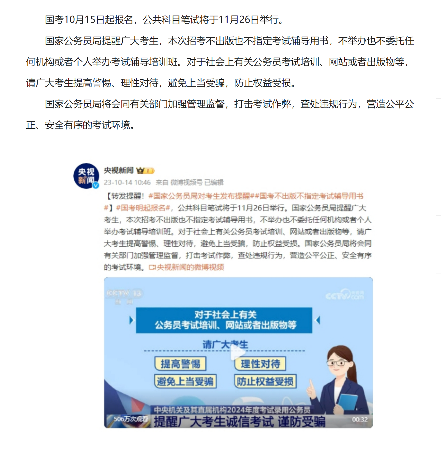 国家公务员局提醒:国考不出版不指定考试辅导用书