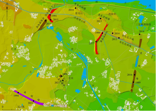 2021年以后,现任三星堆遗址工作站站长冉宏林继续对古城最南侧的南城墙和残存的三星堆地点城墙壕沟进行勘探,确认南城墙建造方式与仓包包小城相同,始建年代不晚于商代中期;对城壕堆积解剖发掘显示,三星堆地点城墙的始建年代与东城墙相同。
