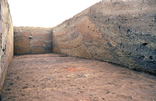 1999年发掘月亮湾城墙探方剖面(由西向东摄)图据三星堆博物馆