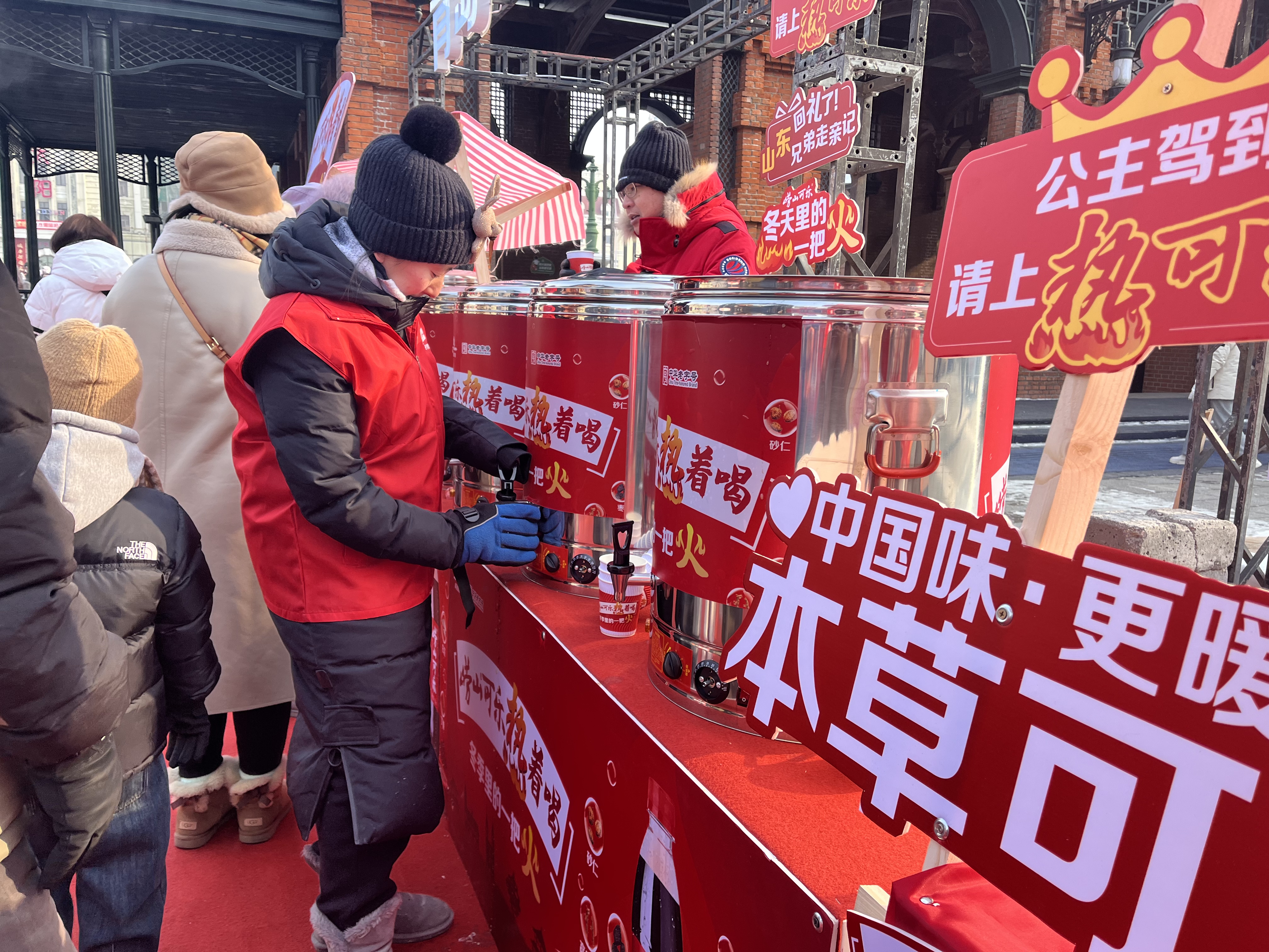 哈尔滨中央大街热可乐飘香的背后,是山东企业特有的好客和热心。作为本次“热暖哈尔滨”活动的主办方,青岛饮料集团将与1月在哈尔滨免费送出10万杯崂山热可乐,为此企业专门在哈尔滨中央大街索菲亚教堂广场前搭建了“热可乐”驿站。