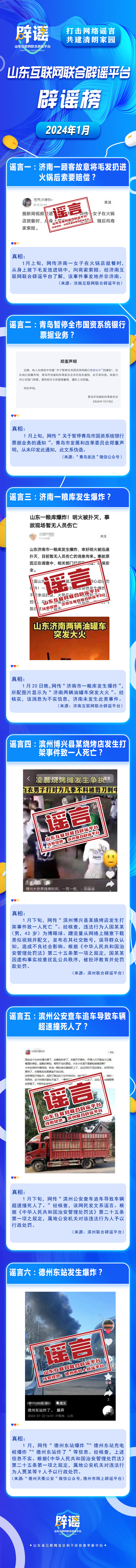 山东互联网联合辟谣平台2024年1月辟谣榜发布