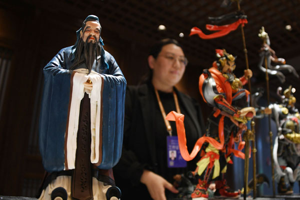 非遗传承人展示的面塑孔子像。记者 李紫恒 摄