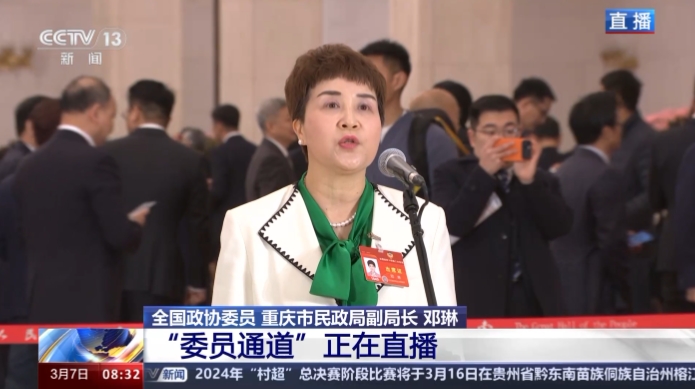 3月7日上午,全国政协十四届二次会议第二场“委员通道”在人民大会堂举行。全国政协委员、重庆市民政局副局长邓琳接受了记者采访。