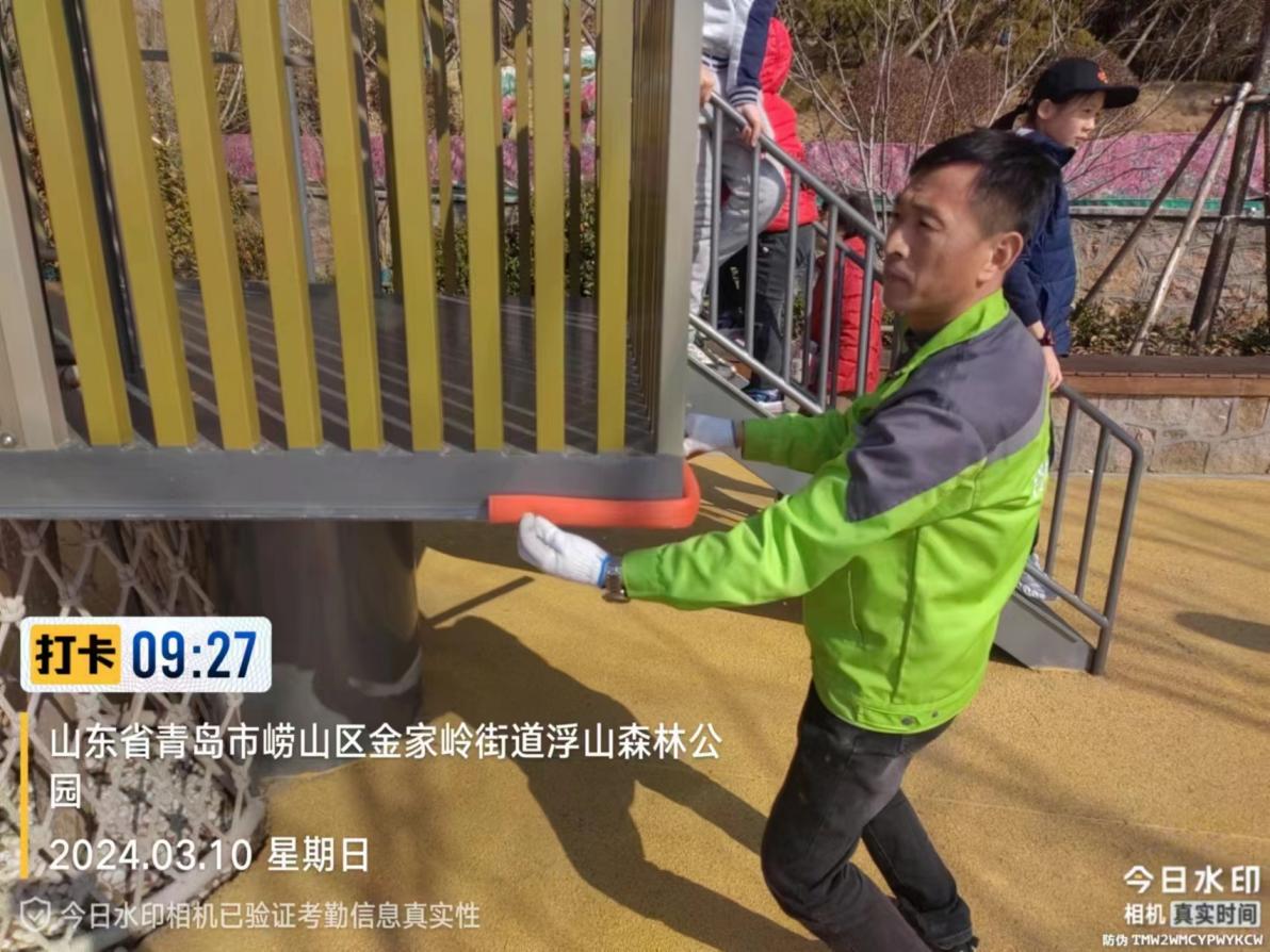 接到网友反映后,“青岛网信帮办小崔”迅速联系崂山区妥善处置。经崂山区城市管理局落实,网民反映情况为该园区游乐设施原透明胶垫和彩色泡沫脱落所致。公园管理人员已于3月10日上午使用醒目海绵保护带及警示条对该设施进行保护升级,杜绝安全隐患。