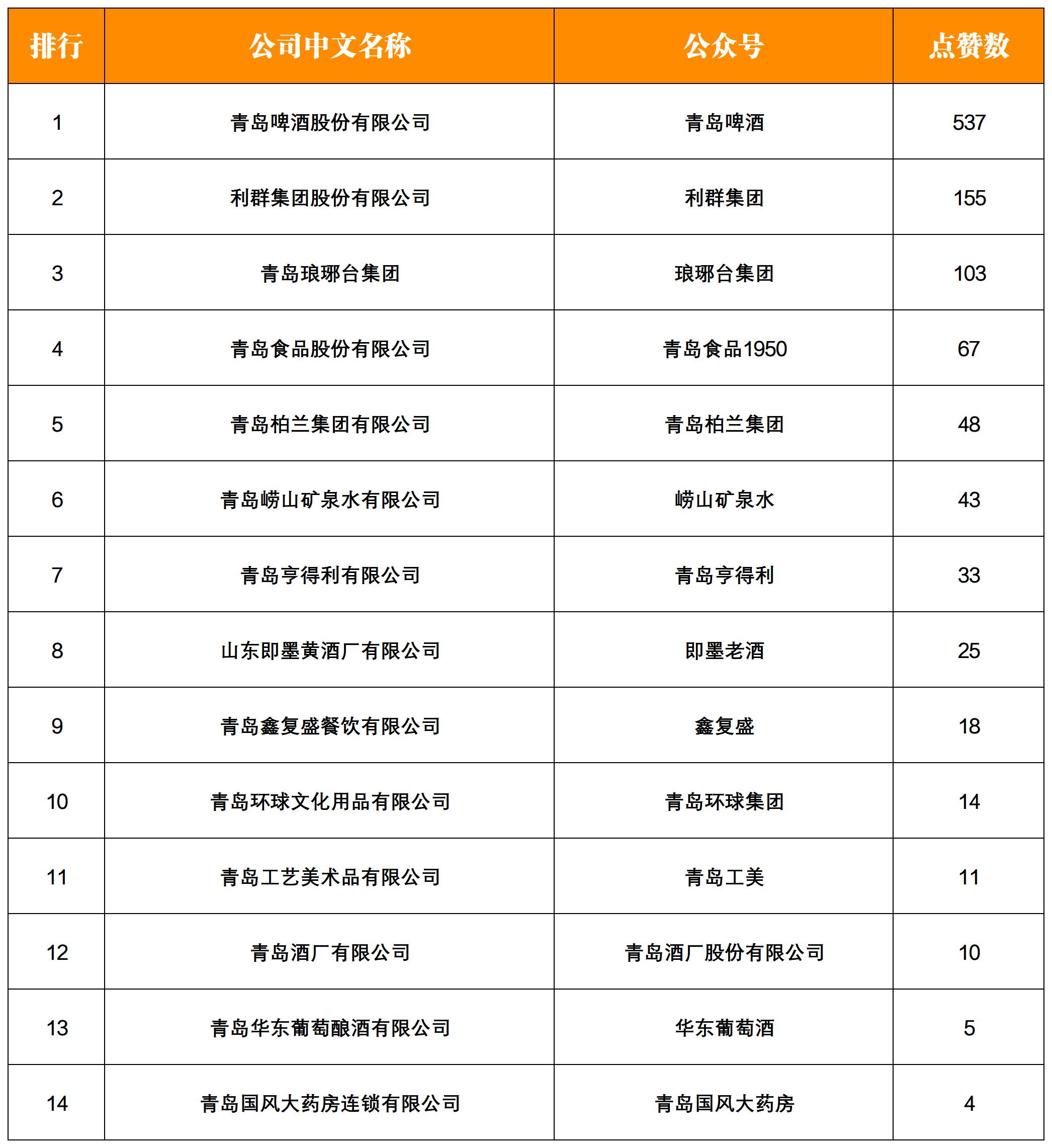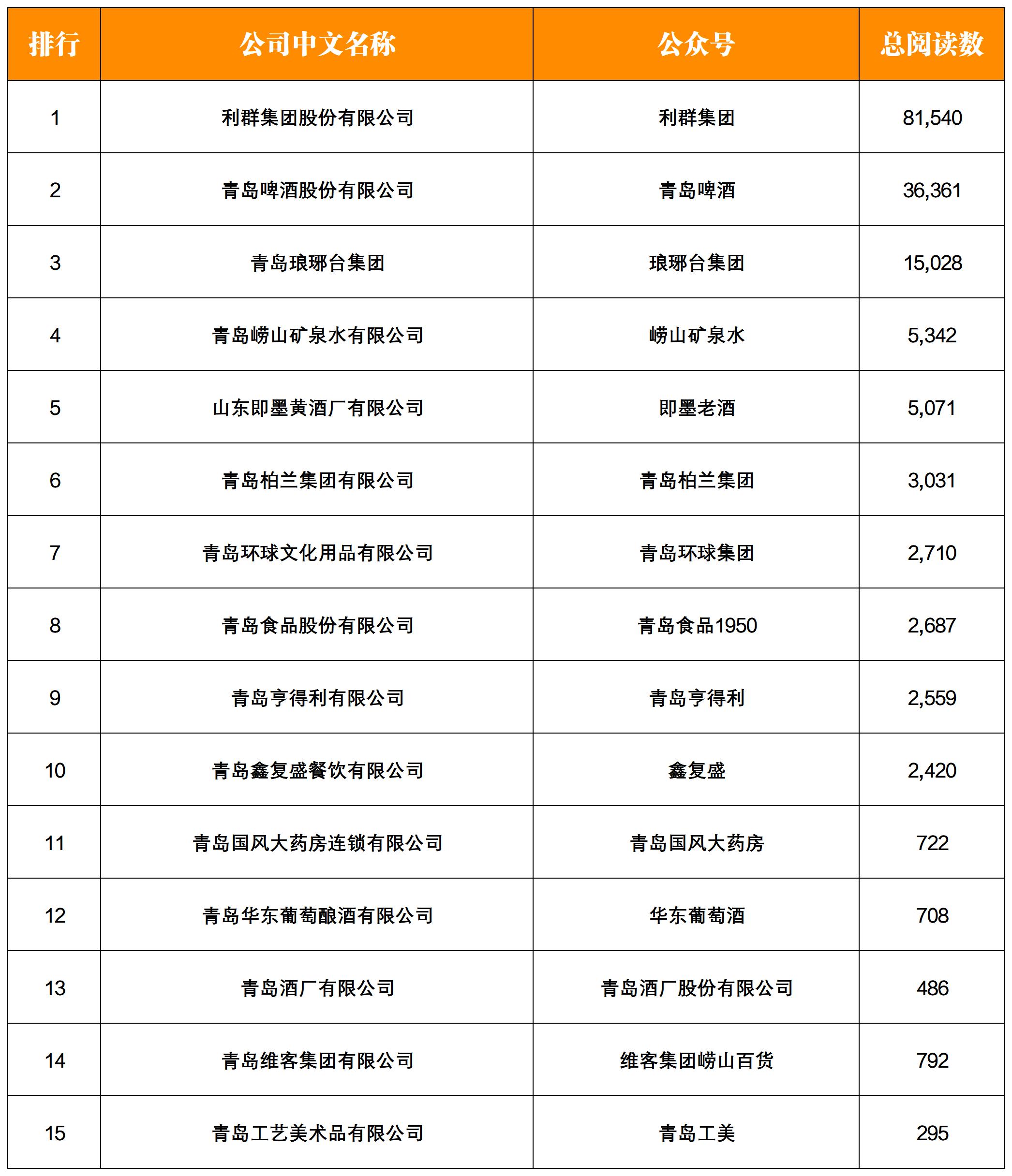 NO.1|权威发布:青岛老字号企业微信影响力月度排行榜TOP15