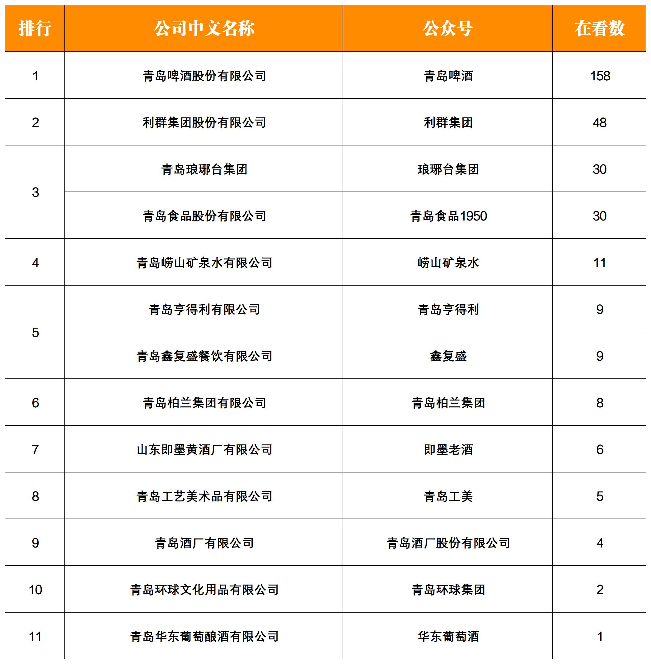 NO.11|权威发布:青岛老字号企业微信影响力月度排行榜TOP15