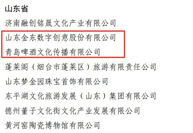 3月27日讯 3月26日,文化和旅游部公布了新一批及通过复核的国家文化产业示范基地名单。经企业申报、省级文化和旅游行政部门推荐、评审和公示等程序,文化和旅游部决定命名219家企业为新一批国家文化产业示范基地;确定165家示范基地通过复核,保留命名。青岛2家企业山东金东数字创意股份有限公司、青岛啤酒文化传播有限公司正式成为国家文化产业示范基地。