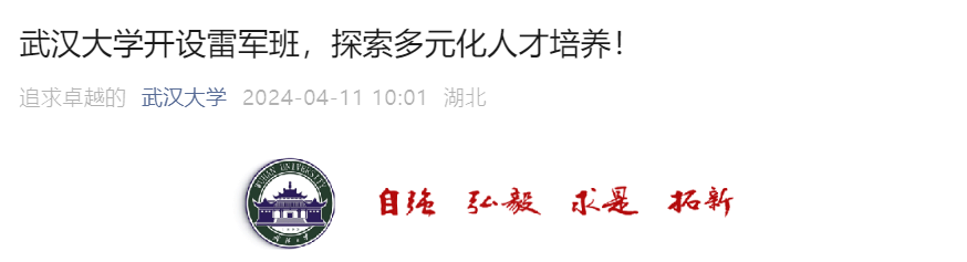 雷军班作为武汉大学拔尖人才培养重点项目,旨在培养未来计算机科学与技术领域的创新创业领军人才,发挥计算机学科在学校拔尖人才培养方面的重要作用,同时为将武汉大学计算机学院打造成国内知名、世界一流的学术高地贡献力量。
