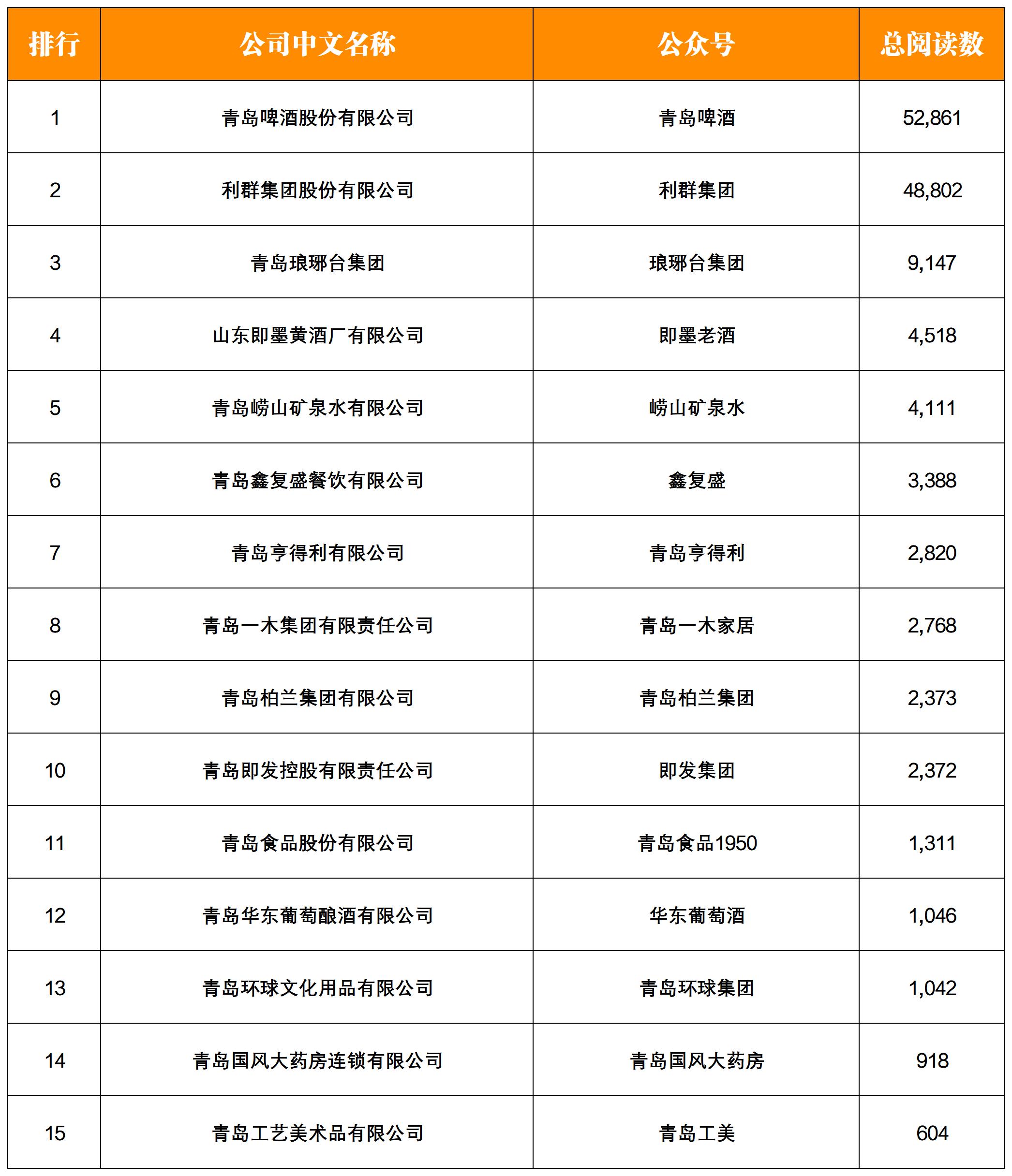 NO.1|权威发布:青岛老字号企业微信影响力月度排行榜TOP15