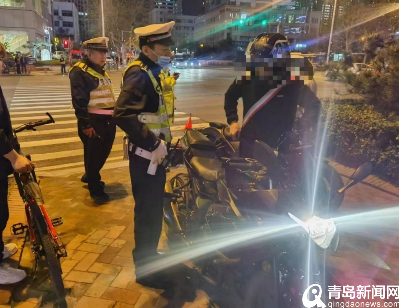4月17日21时20分许,交警市南大队在香港西路延安三路路口夜查过程中,一辆黑色二轮摩托车从香港西路延安三路查车点自北向南方向驶来,在经过路口时,执勤警力发现其车辆排气管声音比正常的排气管声音大,涉嫌非法改装排气管行为。经查,该车存在排气管改装行为。驾驶员称,因身边朋友都玩摩托车,便跟风从网上买了一辆二手摩托车,觉得摩托车很帅,声音很大很拉风,便从老家骑车来青岛游玩,没想到刚到青岛就被查获。执勤民警对其进处以200元罚款,责令其立即整改。